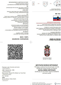 Primer potvrda i Covid sertifikata koji važe u Srbiji i koji imaju svoj QR kod koji generise web link. Ovaj metod važi samo za srpske zelene sertifikate.