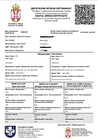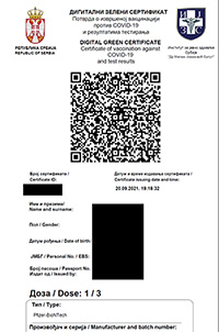 Primer potvrda i Covid sertifikata koji važe u Srbiji i koji imaju svoj QR kod koji generise web link. Ovaj metod važi samo za srpske zelene sertifikate.